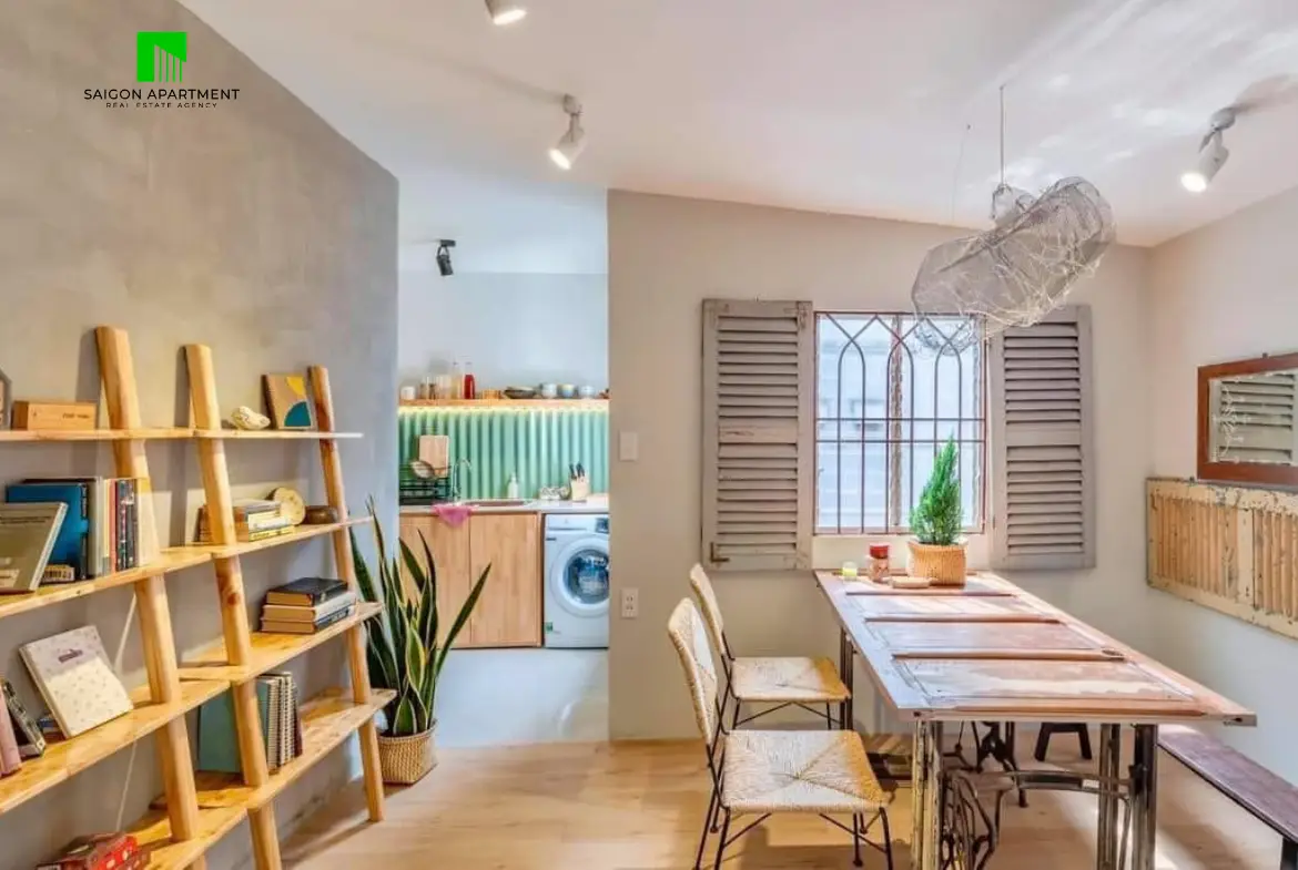 A fully equipped apartment designed in a rustic classic style, featuring large windows that provide excellent ventilation and abundant natural light. The living and resting areas are thoughtfully arranged to create a harmonious and practical layout, the apartment includes a charming small courtyard adorned with carefully selected plants, ensuring convenience and comfort for tenants.