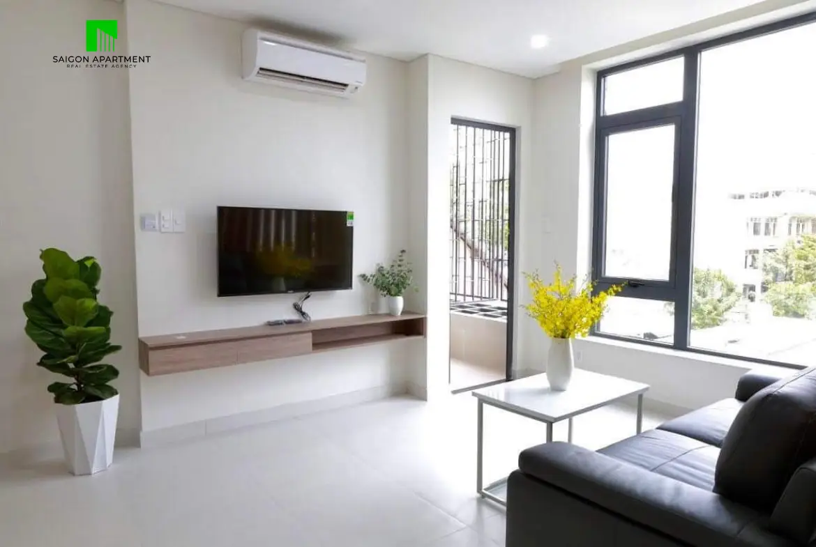 Designed with a minimalist and modern aesthetic, the apartment features large windows that allow abundant natural light and create a bright, airy atmosphere. Strategically located for optimal convenience, it sits near the intersection of Nguyen Thi Minh Khai and Dinh Tien Hoang streets, offering easy access to surrounding areas such as Binh Thanh District, Thu Thiem, and District 2.